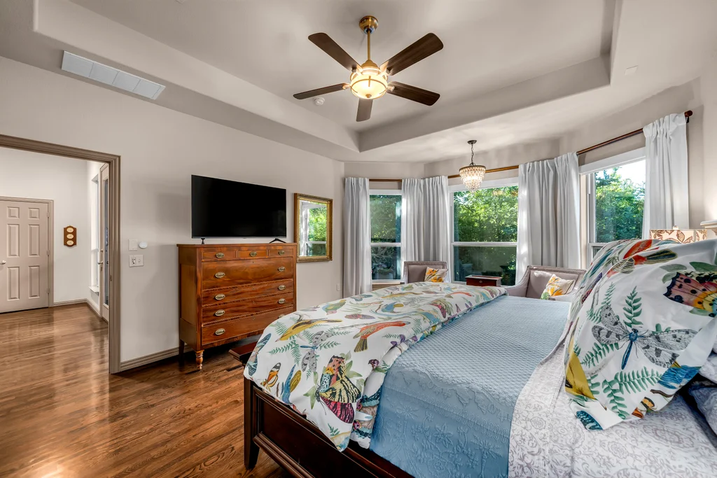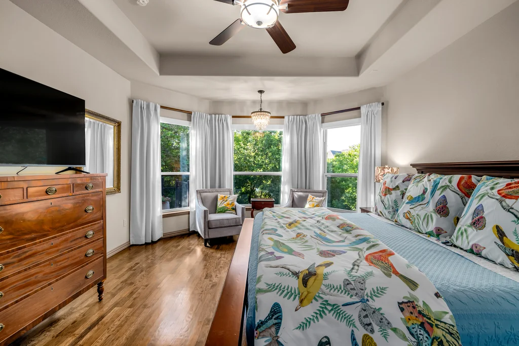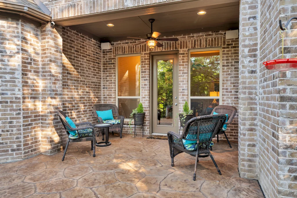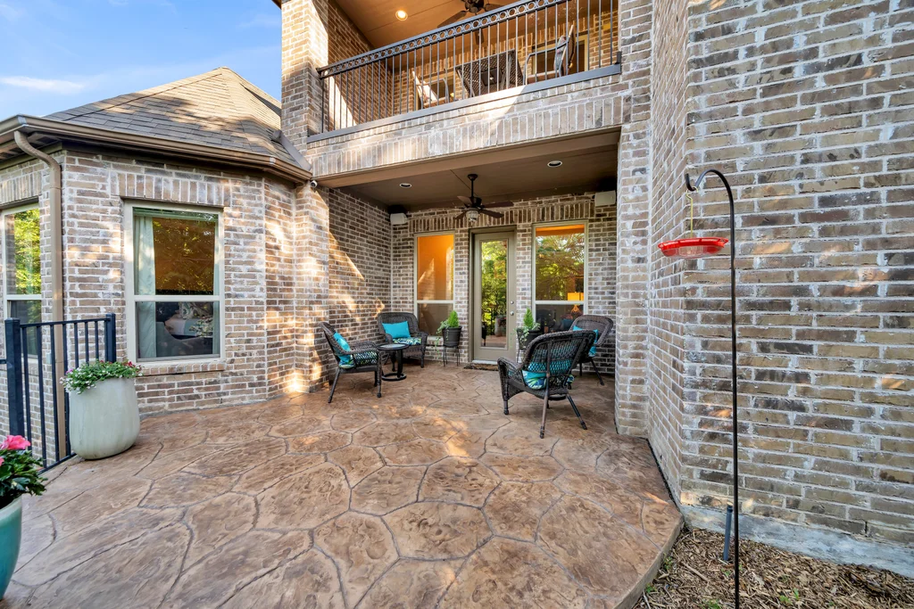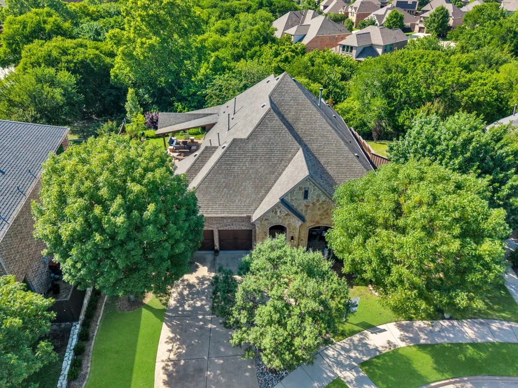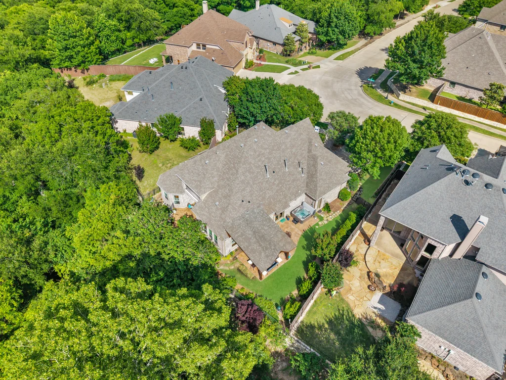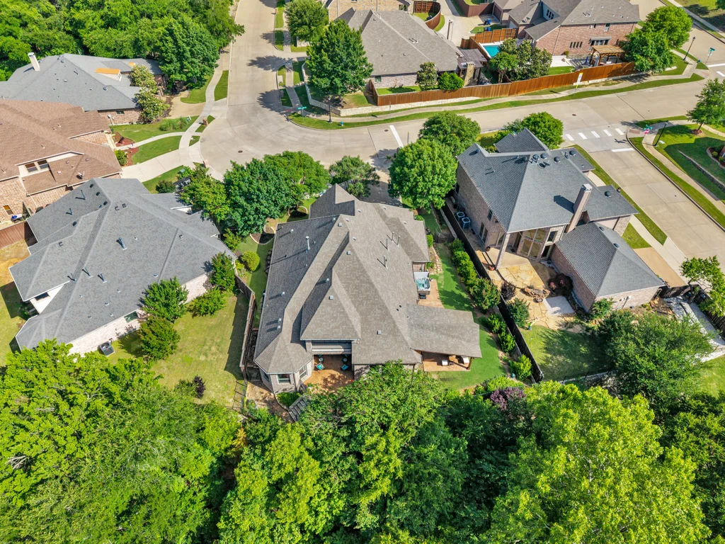 Incredible, hard-to-find 1.5 story Darling-built home on a serene creek lot AND located on a semi cul-de-sac! Don't miss this rare gem! Pristine one-owner home with stunning curb appeal, impeccable landscaping plus a welcoming covered porch entry. The inviting foyer has hardwood flooring that flows throughout the downstairs and views all the way to the back patio and treed landscape beyond! To the right of the entry, a beautiful formal living area is a great flex space for a study as well and a large window overlooks the lush front lawn. Two secondary bedrooms are conveniently located down a side hall; one featuring ensuite bath, both with closets and upgraded lighted ceiling fans. The spacious living room features a corner brick fireplace with hearth and mantle, plenty of room for a crowd and a wall of windows and windowed door to the incredible covered patio with stamped concrete, ceiling fan and speakers, plus views and sounds of the creek beyond! The dreamy kitchen is open to the family room and boasts stainless appliances incl double ovens and a gas stove, huge breakfast bar island and adjacent breakfast nook with French doors to the large main patio. The formal dining room was customized to maximize backyard views and includes a series of windows with breathtaking views of both sides of the yard. A convenient built-in serving area is just off the dining room. The private master bedroom is spacious and serene at the back of the home, featuring an incredible bay of windows plus a large master bath with separate vanities, walk-in shower and large walk-in closet. Upstairs is a huge bonus room with its own bathroom and a built-in homework or craft station, plus a large covered balcony! Outside there are several relaxing and entertaining options with a large yard featuring an extended patio both covered and uncovered, another extended patio with creek views and another lower level of yard space for gardening or play! Walk to elementary school, community pool and more!