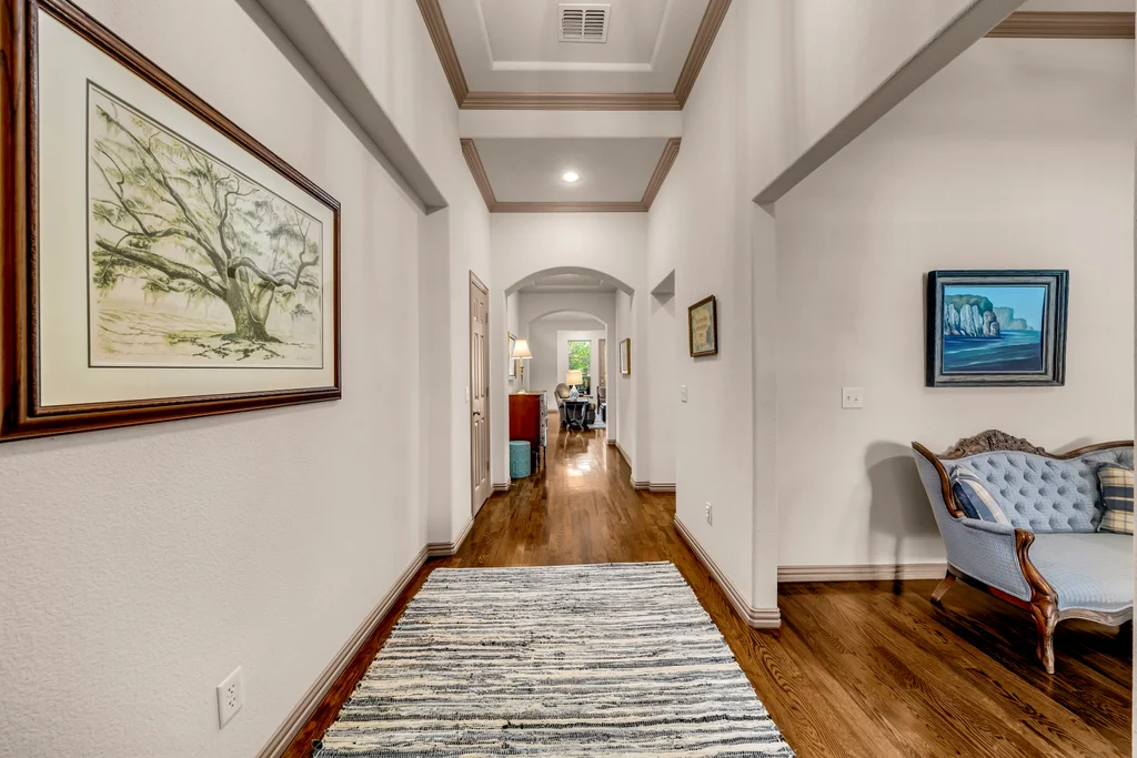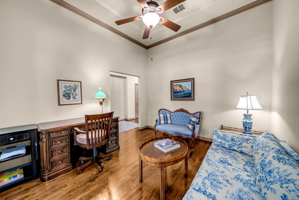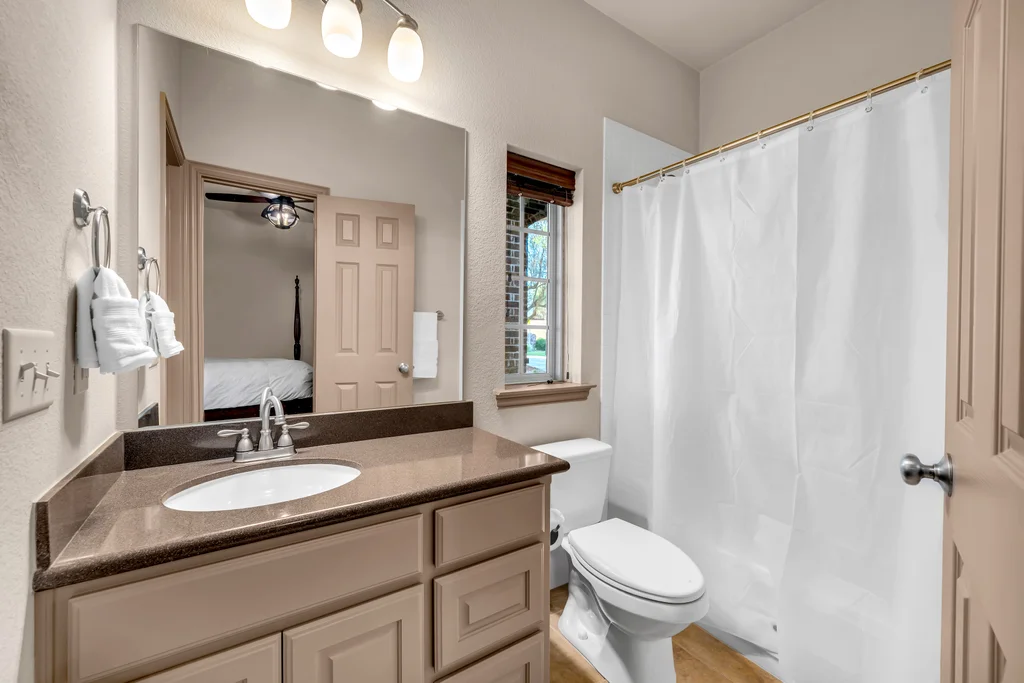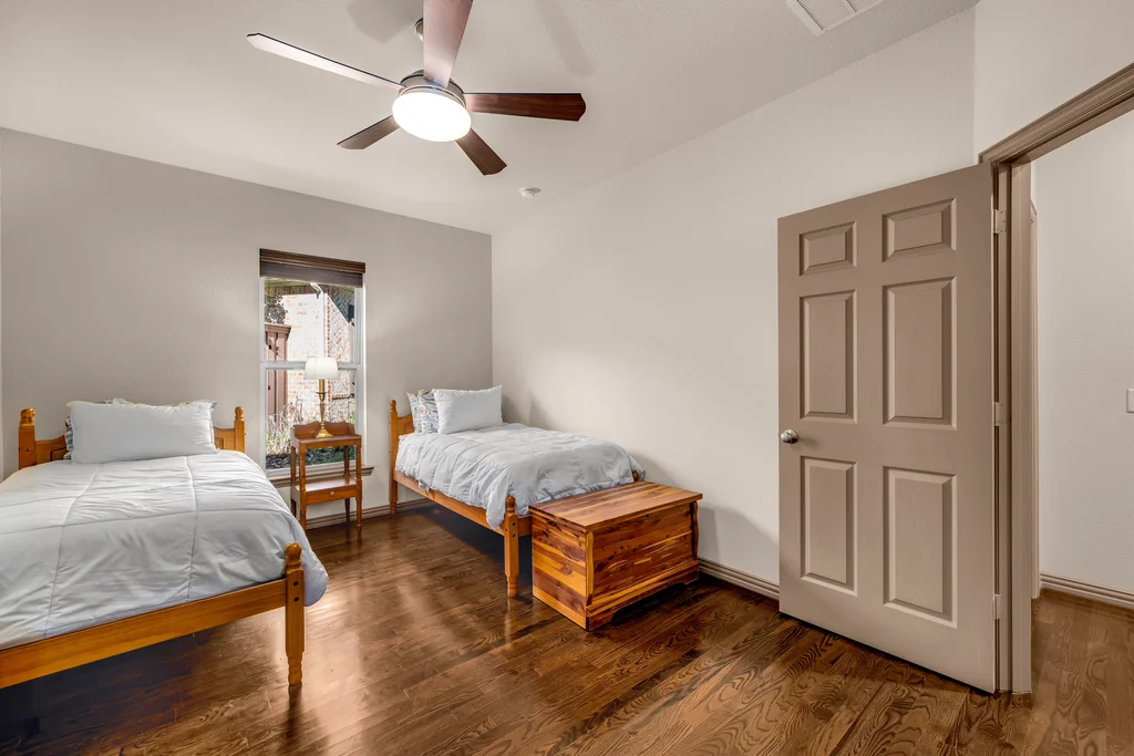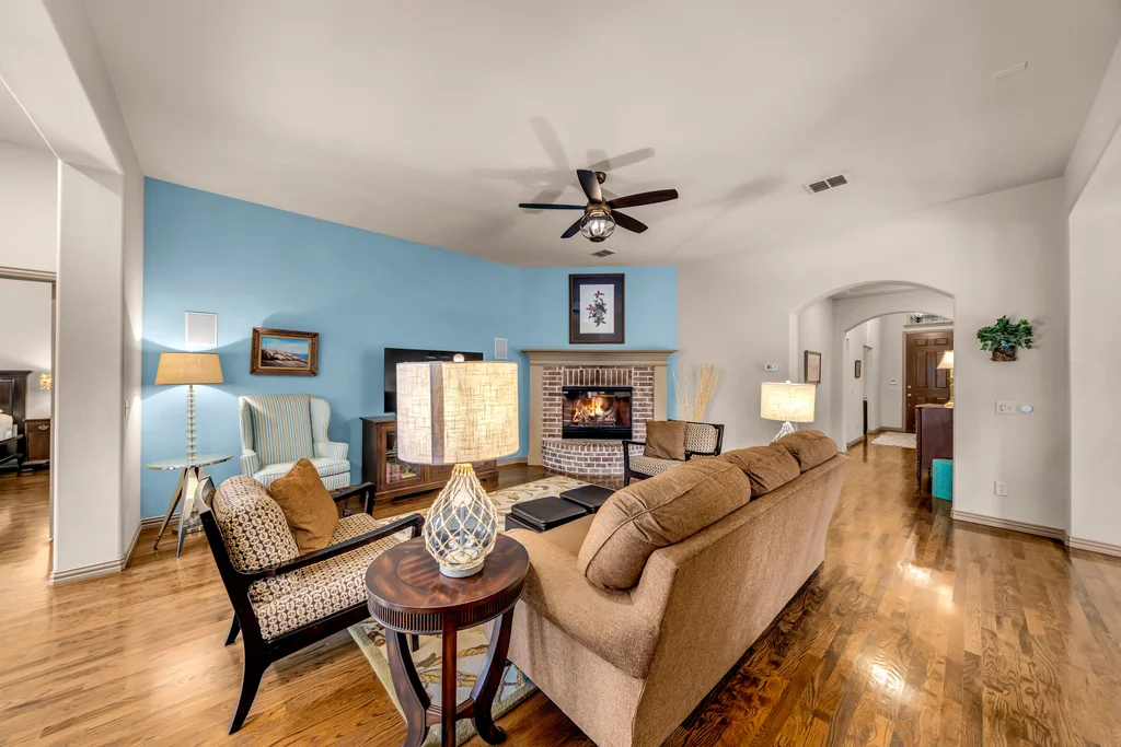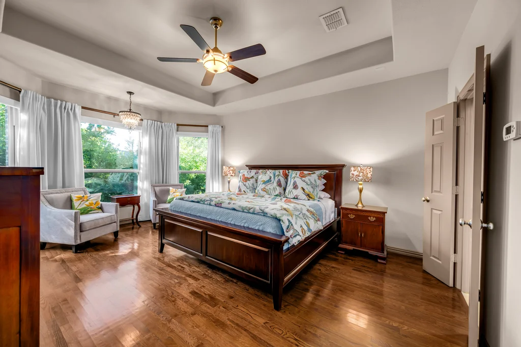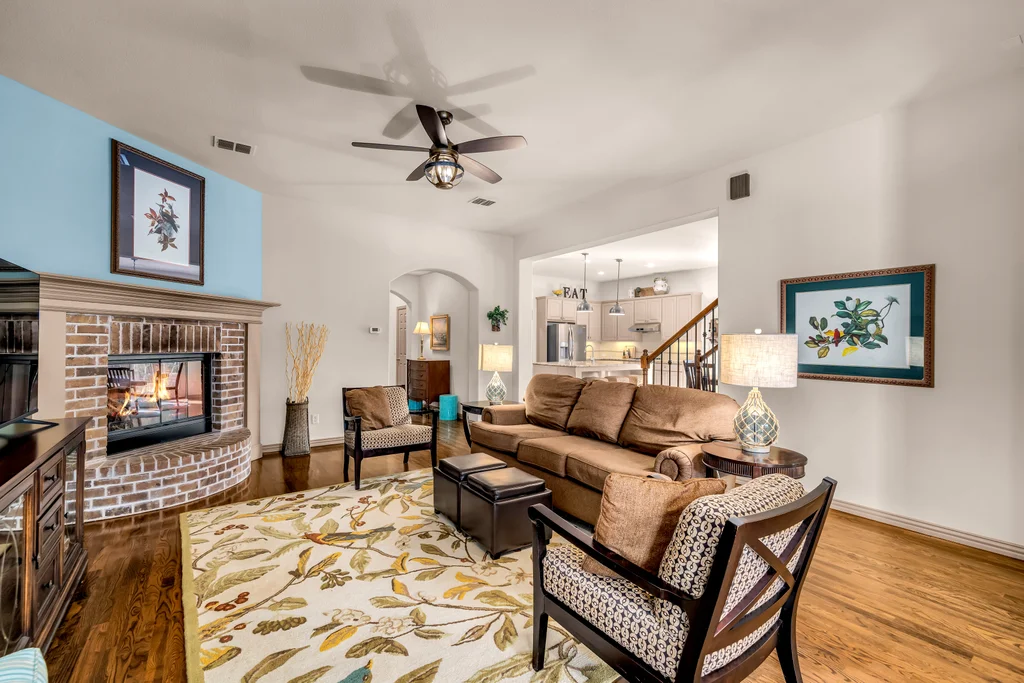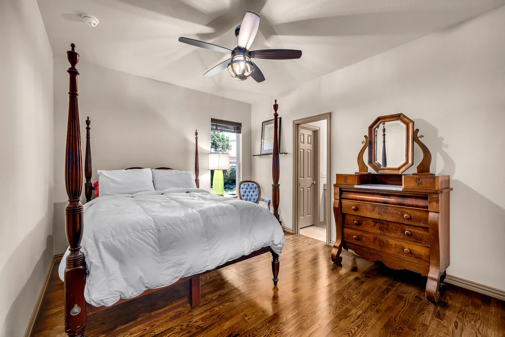 Incredible, hard-to-find 1.5 story Darling-built home on a serene creek lot AND located on a semi cul-de-sac! Don't miss this rare gem! Pristine one-owner home with stunning curb appeal, impeccable landscaping plus a welcoming covered porch entry. The inviting foyer has hardwood flooring that flows throughout the downstairs and views all the way to the back patio and treed landscape beyond! To the right of the entry, a beautiful formal living area is a great flex space for a study as well and a large window overlooks the lush front lawn. Two secondary bedrooms are conveniently located down a side hall; one featuring ensuite bath, both with closets and upgraded lighted ceiling fans. The spacious living room features a corner brick fireplace with hearth and mantle, plenty of room for a crowd and a wall of windows and windowed door to the incredible covered patio with stamped concrete, ceiling fan and speakers, plus views and sounds of the creek beyond! The dreamy kitchen is open to the family room and boasts stainless appliances incl double ovens and a gas stove, huge breakfast bar island and adjacent breakfast nook with French doors to the large main patio. The formal dining room was customized to maximize backyard views and includes a series of windows with breathtaking views of both sides of the yard. A convenient built-in serving area is just off the dining room. The private master bedroom is spacious and serene at the back of the home, featuring an incredible bay of windows plus a large master bath with separate vanities, walk-in shower and large walk-in closet. Upstairs is a huge bonus room with its own bathroom and a built-in homework or craft station, plus a large covered balcony! Outside there are several relaxing and entertaining options with a large yard featuring an extended patio both covered and uncovered, another extended patio with creek views and another lower level of yard space for gardening or play! Walk to elementary school, community pool and more!