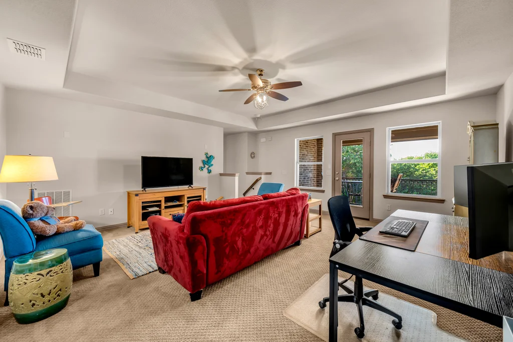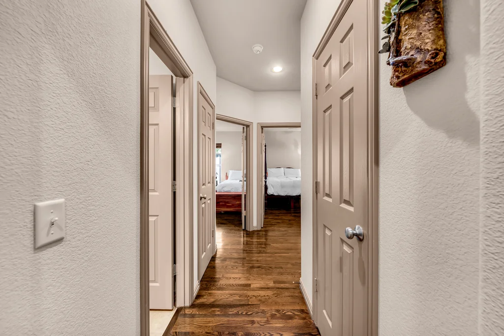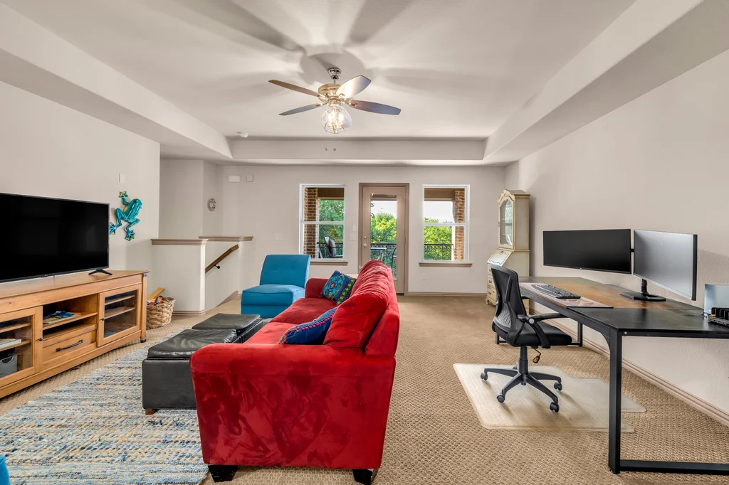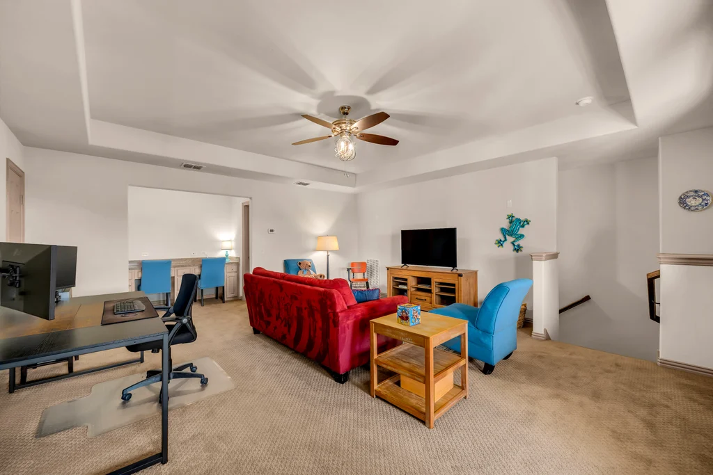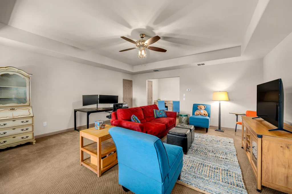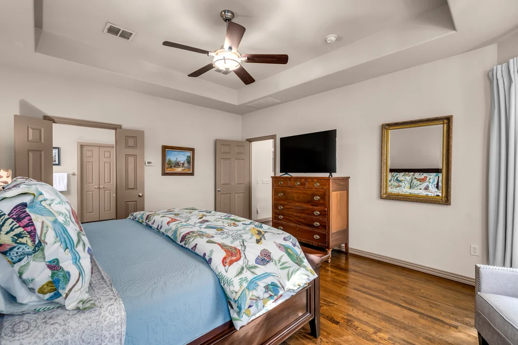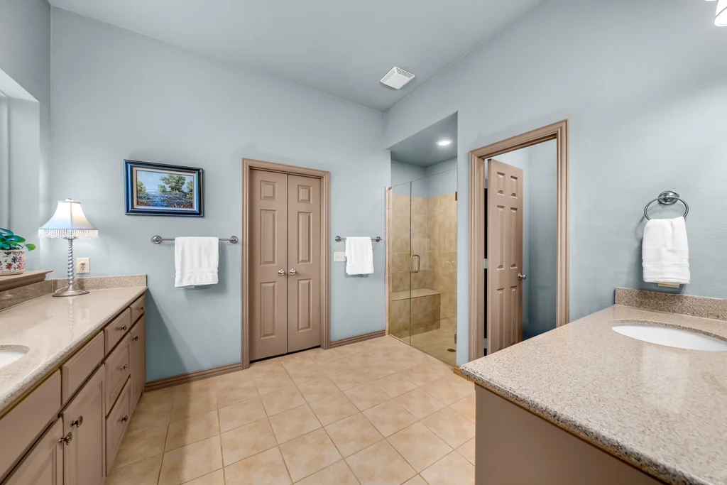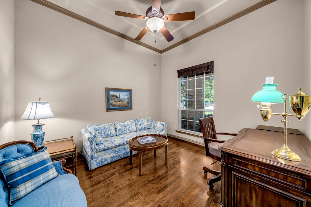 Incredible, hard-to-find 1.5 story Darling-built home on a serene creek lot AND located on a semi cul-de-sac! Don't miss this rare gem! Pristine one-owner home with stunning curb appeal, impeccable landscaping plus a welcoming covered porch entry. The inviting foyer has hardwood flooring that flows throughout the downstairs and views all the way to the back patio and treed landscape beyond! To the right of the entry, a beautiful formal living area is a great flex space for a study as well and a large window overlooks the lush front lawn. Two secondary bedrooms are conveniently located down a side hall; one featuring ensuite bath, both with closets and upgraded lighted ceiling fans. The spacious living room features a corner brick fireplace with hearth and mantle, plenty of room for a crowd and a wall of windows and windowed door to the incredible covered patio with stamped concrete, ceiling fan and speakers, plus views and sounds of the creek beyond! The dreamy kitchen is open to the family room and boasts stainless appliances incl double ovens and a gas stove, huge breakfast bar island and adjacent breakfast nook with French doors to the large main patio. The formal dining room was customized to maximize backyard views and includes a series of windows with breathtaking views of both sides of the yard. A convenient built-in serving area is just off the dining room. The private master bedroom is spacious and serene at the back of the home, featuring an incredible bay of windows plus a large master bath with separate vanities, walk-in shower and large walk-in closet. Upstairs is a huge bonus room with its own bathroom and a built-in homework or craft station, plus a large covered balcony! Outside there are several relaxing and entertaining options with a large yard featuring an extended patio both covered and uncovered, another extended patio with creek views and another lower level of yard space for gardening or play! Walk to elementary school, community pool and more!